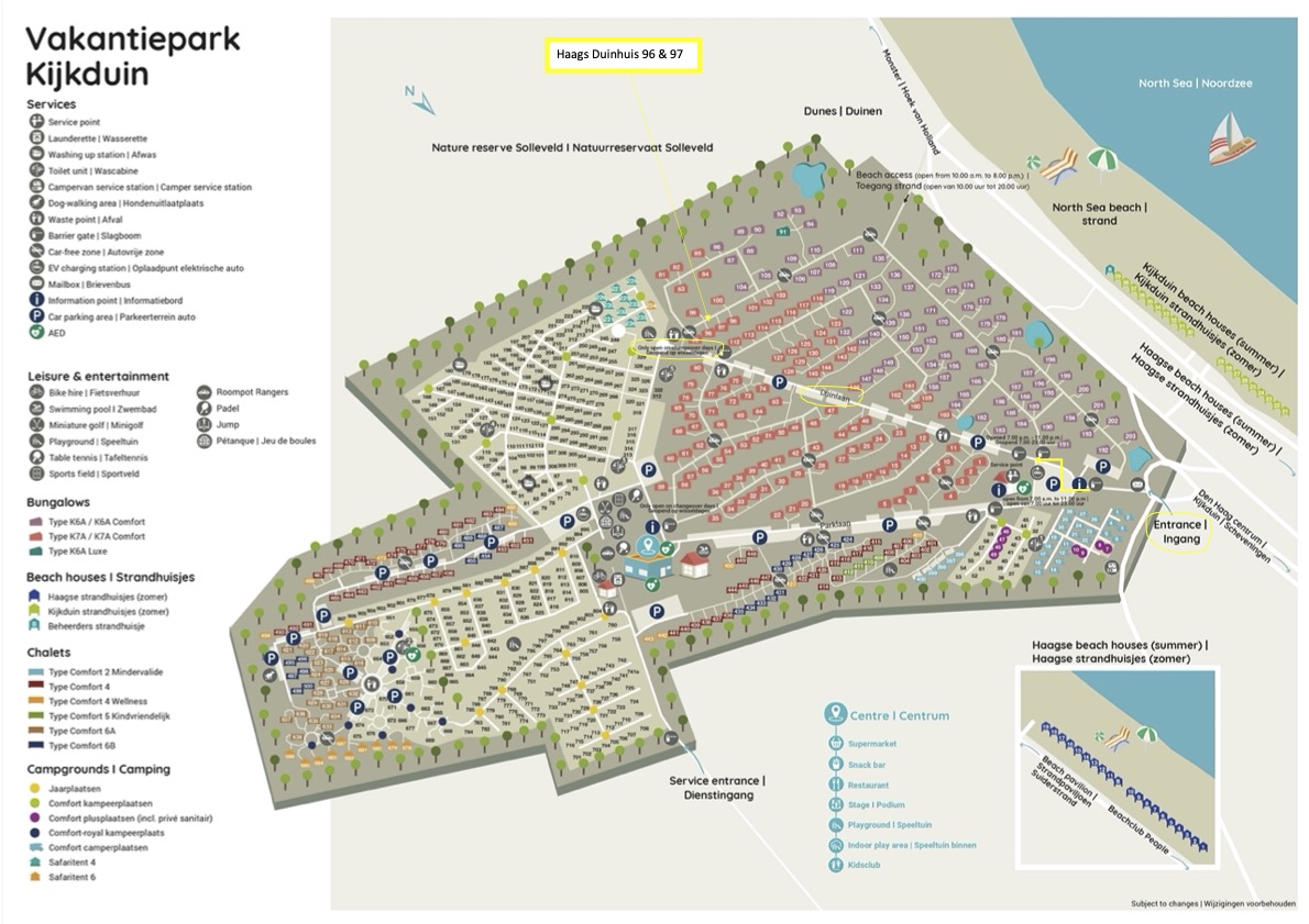 600 metres from the Beach of The Hague, in the center of holidaypark Kijkduin with all kinds of facilities and an accommodation with extra comfort is at your reach when you stay at our Haags Duinhuis. Haags Duinhuis has 2 holiday homes beside each other. Click here to find out where they are situated at Kijkduinpark.